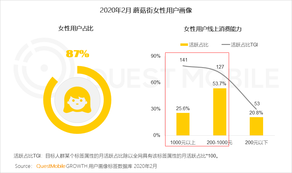 8.2 以直播為主要特色的蘑菇街,以女性用戶為主,其女性用戶線上消費能力顯著高于全網(wǎng)。