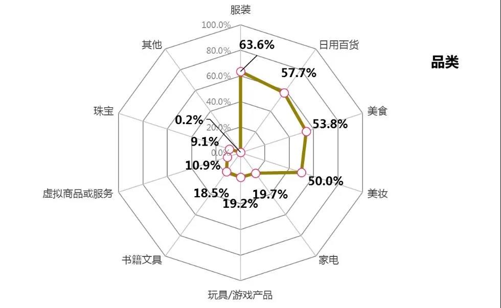 二、服裝、百貨、美食美妝是消費(fèi)者青睞品類