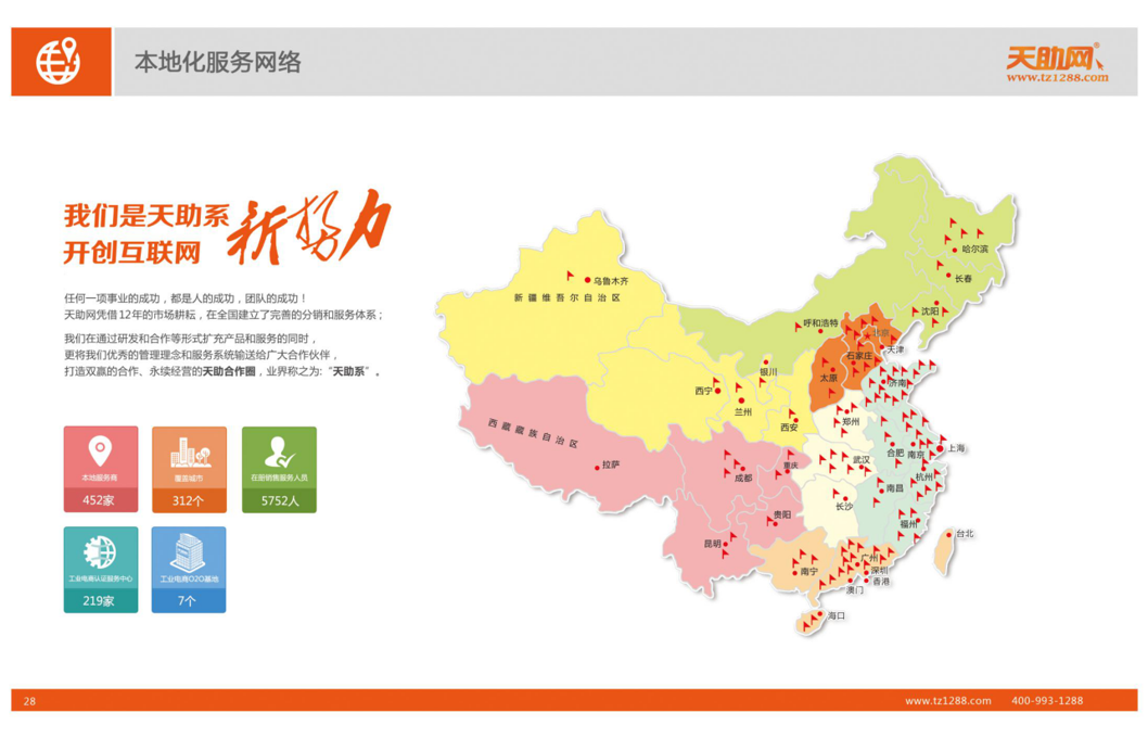 天助網(wǎng)是知名的互聯(lián)網(wǎng)平臺,高新技術企業(yè),在深圳、咸寧荊門、荊州等地擁有數(shù)個工業(yè)電商產(chǎn)業(yè)園,總面積超過3萬平米。天助網(wǎng)13年專注中小企業(yè)全網(wǎng)生態(tài)整合營銷,先后榮獲深圳知名品牌。2018中國產(chǎn)業(yè)互聯(lián)網(wǎng)大會推薦服務商等。天助網(wǎng)擁有核心的B2B聯(lián)合體資源,是中小企業(yè)全網(wǎng)生態(tài)整合營銷的定義者,天助網(wǎng)在業(yè)內(nèi)創(chuàng)新提出互聯(lián)網(wǎng)生態(tài)整合營銷理念,并與”- -呼百應、中國供應商、八方資源網(wǎng)"等40余家知名B2B平臺達成深度戰(zhàn)略合作,共同優(yōu)化與構(gòu)建B2B行業(yè)的全新生態(tài)。目前,天助網(wǎng)在全國擁有400多家本地服務商,超過5000名專業(yè)電子商務顧問,業(yè)界稱之為“天助系"。天助網(wǎng)平臺累計注冊用戶達到1000余萬家,付費用戶超過10萬家,為各合作平臺輸送付費會員超過100萬家。13年來。天助網(wǎng)始終以創(chuàng)新作為企業(yè)發(fā)展的基石,公司先后獲得42項著作權(quán)及專利證書、16項商標注冊證書;未來,天助網(wǎng)將繼續(xù)開拓創(chuàng)新,全力支撐互聯(lián)網(wǎng)生態(tài)整合營銷與中小企業(yè)電子商務發(fā)展。