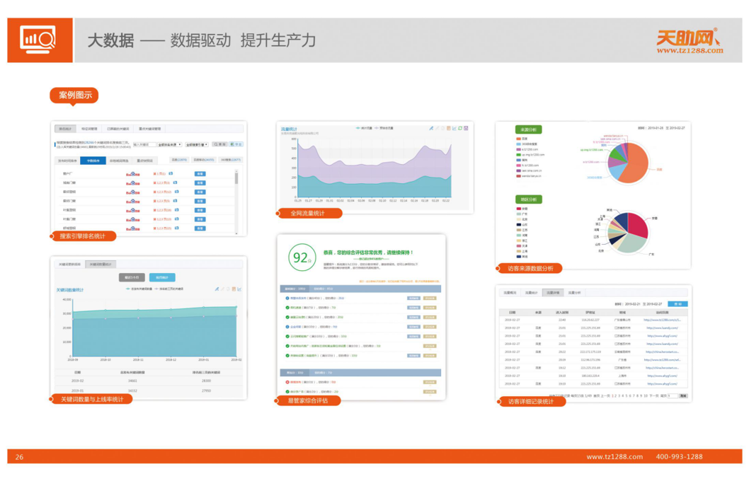 6大數(shù)據(jù)支撐,自動診斷、分析、優(yōu)化,效果統(tǒng)計,報表呈現(xiàn)。